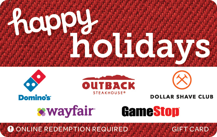 Redemption Instructions Eat shop and play at. Get the perfect one-size-fits-all holiday gift with the Happy Holidays card. This multi-store restaurant gift card features seven brands and is easy to use with enough options to satisfy almost everyone on your list.